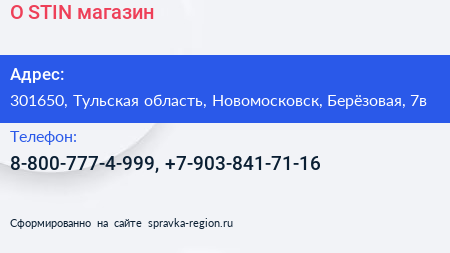 Адрес: Тульская область, Новомосковск, Рязанское шоссе, 9ж