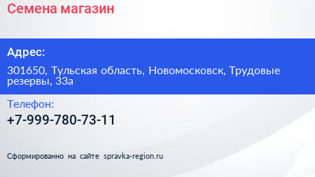 Семена, магазин по адресу 301650, Тульская область, Новомосковск, Трудовые резервы, 33а в дальнейшем Организация, размещена в следующих категориях: