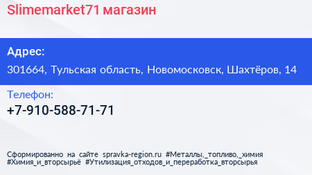 Slimemarket71, магазин по адресу 301664, Тульская область, Новомосковск, Шахтёров, 14 в дальнейшем Организация, размещена в следующих категориях: