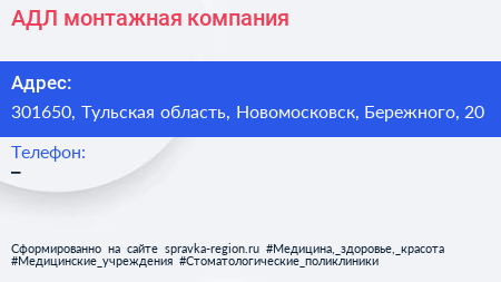 АДЛ, монтажная компания по адресу 301650, Тульская область, Новомосковск, Бережного, 20 в дальнейшем Организация, размещена в следующих категориях: