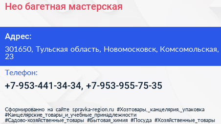 Нео, багетная мастерская по адресу 301650, Тульская область, Новомосковск, Комсомольская, 23 в дальнейшем Организация, размещена в следующих категориях: