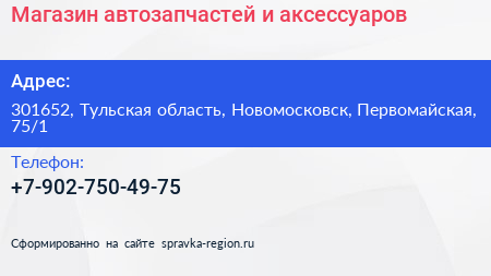 Магазин автозапчастей и аксессуаров по адресу 301652, Тульская область, Новомосковск, Первомайская, 75/1 в дальнейшем Организация, размещена в следующих категориях: