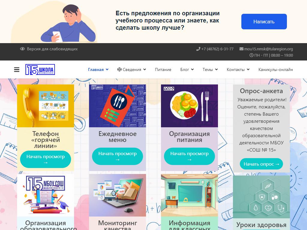 Средняя общеобразовательная школа №15, г. Новомосковск по адресу 301664, Тульская область, Новомосковск, Солнечная, 8 в дальнейшем Организация, размещена в следующих категориях:
