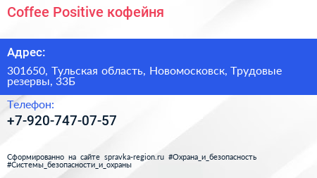 Coffee Positive, кофейня по адресу 301650, Тульская область, Новомосковск, Трудовые резервы, 33Б в дальнейшем Организация, размещена в следующих категориях: