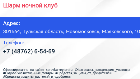 Шарм, ночной клуб по адресу 301664, Тульская область, Новомосковск, Маяковского, 10 в дальнейшем Организация, размещена в следующих категориях: