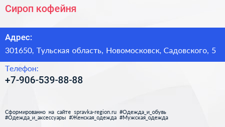 Сироп, кофейня по адресу 301650, Тульская область, Новомосковск, Садовского, 5 в дальнейшем Организация, размещена в следующих категориях: