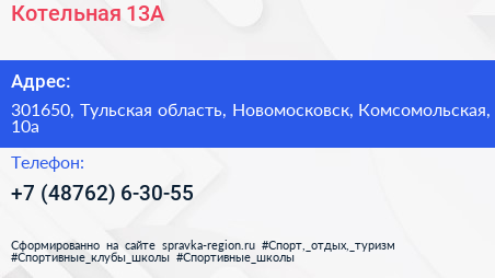 Котельная №13А по адресу 301650, Тульская область, Новомосковск, Комсомольская, 10а в дальнейшем Организация, размещена в следующих категориях: