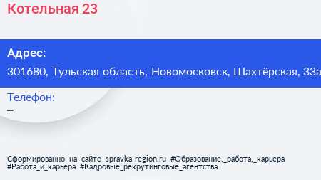 Котельная №23 по адресу 301680, Тульская область, Новомосковск, Шахтёрская, 33а в дальнейшем Организация, размещена в следующих категориях: