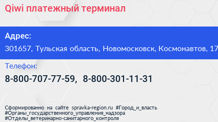 Qiwi, платежный терминал по адресу 301657, Тульская область, Новомосковск, Космонавтов, 17 в дальнейшем Организация, размещена в следующих категориях: