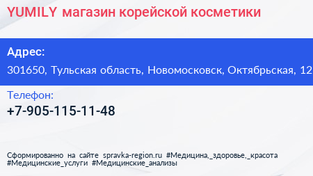 YUMILY, магазин корейской косметики по адресу 301650, Тульская область, Новомосковск, Октябрьская, 12 в дальнейшем Организация, размещена в следующих категориях:
