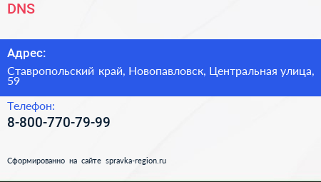 DNS по адресу Ставропольский край, Новопавловск, Центральная улица, 59 в дальнейшем Организация, размещена в следующих категориях: