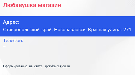Любавушка, магазин по адресу Ставропольский край, Новопавловск, Красная улица, 271 в дальнейшем Организация, размещена в следующих категориях: