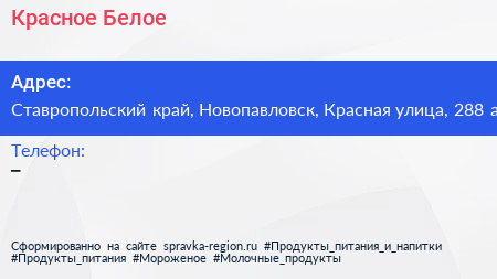 Красное & Белое по адресу Ставропольский край, Новопавловск, Красная улица, 288 а в дальнейшем Организация, размещена в следующих категориях:
