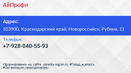АйПрофи по адресу 353900, Краснодарский край, Новороссийск, Рубина, 11 в дальнейшем Организация, размещена в следующих категориях:
