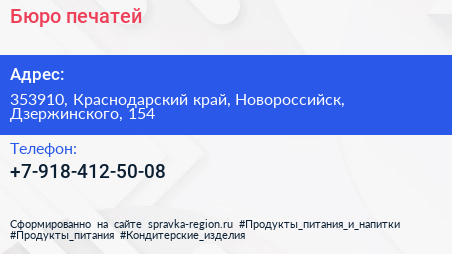 Бюро печатей по адресу 353910, Краснодарский край, Новороссийск, Дзержинского, 154 в дальнейшем Организация, размещена в следующих категориях:
