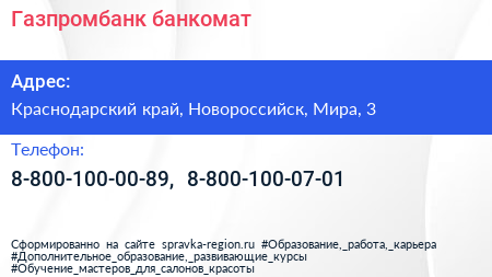 Газпромбанк, банкомат по адресу Краснодарский край, Новороссийск, Мира, 3 в дальнейшем Организация, размещена в следующих категориях: