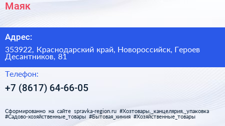 Маяк по адресу 353922, Краснодарский край, Новороссийск, Героев Десантников, 81 в дальнейшем Организация, размещена в следующих категориях: