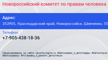 Новороссийский комитет по правам человека по адресу 353905, Краснодарский край, Новороссийск, Шевченко, 55 в дальнейшем Организация, размещена в следующих категориях: