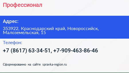 Профессионал по адресу 353922, Краснодарский край, Новороссийск, Малоземельская, 15 в дальнейшем Организация, размещена в следующих категориях: