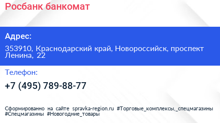 Росбанк, банкомат по адресу 353910, Краснодарский край, Новороссийск, проспект Ленина, 22 в дальнейшем Организация, размещена в следующих категориях: