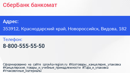 СберБанк, банкомат по адресу 353912, Краснодарский край, Новороссийск, Видова, 182 в дальнейшем Организация, размещена в следующих категориях: