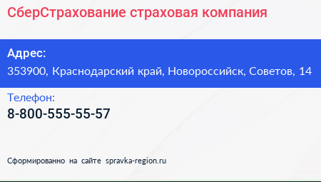 СберСтрахование, страховая компания по адресу 353900, Краснодарский край, Новороссийск, Советов, 14 в дальнейшем Организация, размещена в следующих категориях: