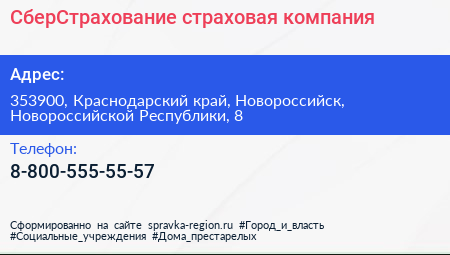 СберСтрахование, страховая компания по адресу 353900, Краснодарский край, Новороссийск, Новороссийской Республики, 8 в дальнейшем Организация, размещена в следующих категориях: