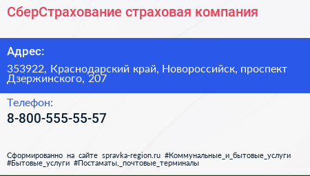 СберСтрахование, страховая компания по адресу 353922, Краснодарский край, Новороссийск, проспект Дзержинского, 207 в дальнейшем Организация, размещена в следующих категориях: