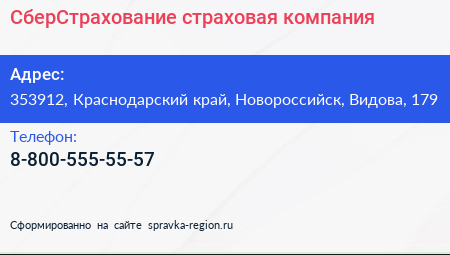 СберСтрахование, страховая компания по адресу 353912, Краснодарский край, Новороссийск, Видова, 179 в дальнейшем Организация, размещена в следующих категориях: