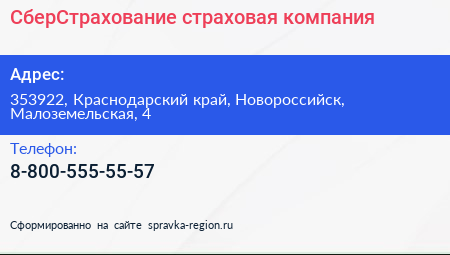 СберСтрахование, страховая компания по адресу 353922, Краснодарский край, Новороссийск, Малоземельская, 4 в дальнейшем Организация, размещена в следующих категориях: