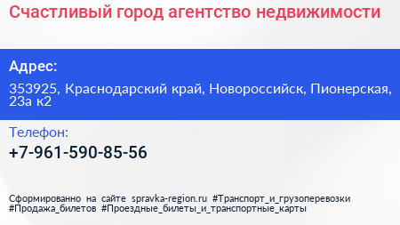 Счастливый город, агентство недвижимости по адресу 353925, Краснодарский край, Новороссийск, Пионерская, 23а к2 в дальнейшем Организация, размещена в следующих категориях: