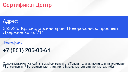 СертификатЦентр по адресу 353925, Краснодарский край, Новороссийск, проспект Дзержинского, 211 в дальнейшем Организация, размещена в следующих категориях:
