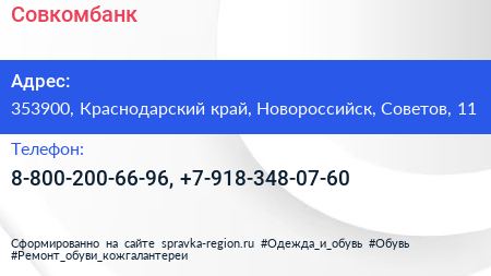 Совкомбанк по адресу 353900, Краснодарский край, Новороссийск, Советов, 11 в дальнейшем Организация, размещена в следующих категориях: