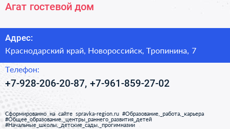 Агат, гостевой дом по адресу Краснодарский край, Новороссийск, Тропинина, 7 в дальнейшем Организация, размещена в следующих категориях: