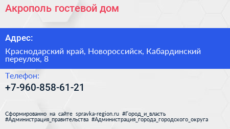 Акрополь, гостевой дом по адресу Краснодарский край, Новороссийск, Кабардинский переулок, 8 в дальнейшем Организация, размещена в следующих категориях: