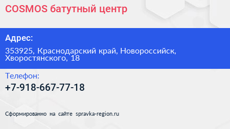 COSMOS, батутный центр по адресу 353925, Краснодарский край, Новороссийск, Хворостянского, 18 в дальнейшем Организация, размещена в следующих категориях: