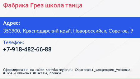 Фабрика Грез, школа танца по адресу 353900, Краснодарский край, Новороссийск, Советов, 9 в дальнейшем Организация, размещена в следующих категориях: