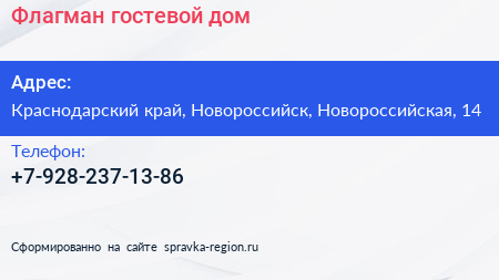 Флагман, гостевой дом по адресу Краснодарский край, Новороссийск, Новороссийская, 14 в дальнейшем Организация, размещена в следующих категориях: