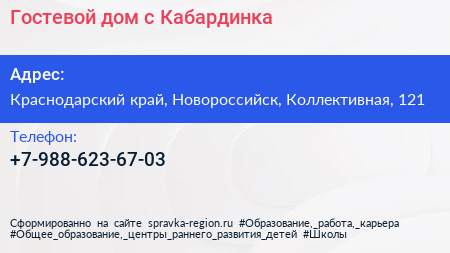 Гостевой дом, с. Кабардинка по адресу Краснодарский край, Новороссийск, Коллективная, 121 в дальнейшем Организация, размещена в следующих категориях: