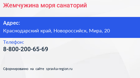 Жемчужина моря, санаторий по адресу Краснодарский край, Новороссийск, Мира, 20 в дальнейшем Организация, размещена в следующих категориях: