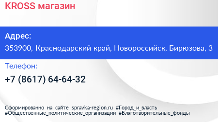 KROSS, магазин по адресу 353900, Краснодарский край, Новороссийск, Бирюзова, 3 в дальнейшем Организация, размещена в следующих категориях: