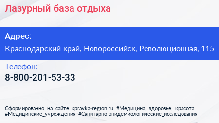 Лазурный, база отдыха по адресу Краснодарский край, Новороссийск, Революционная, 115 в дальнейшем Организация, размещена в следующих категориях:
