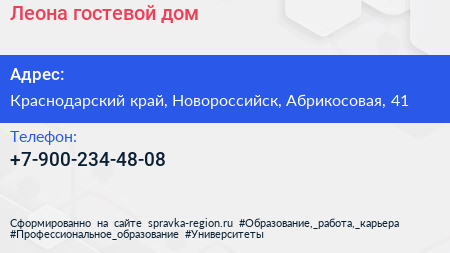 Леона, гостевой дом по адресу Краснодарский край, Новороссийск, Абрикосовая, 41 в дальнейшем Организация, размещена в следующих категориях: