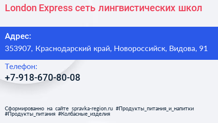 London Express, сеть лингвистических школ по адресу 353907, Краснодарский край, Новороссийск, Видова, 91 в дальнейшем Организация, размещена в следующих категориях: