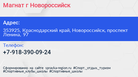 Магнат, г. Новороссийск по адресу 353925, Краснодарский край, Новороссийск, проспект Ленина, 97 в дальнейшем Организация, размещена в следующих категориях: