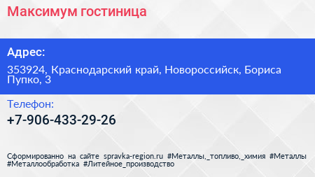 Максимум, гостиница по адресу 353924, Краснодарский край, Новороссийск, Бориса Пупко, 3 в дальнейшем Организация, размещена в следующих категориях:
