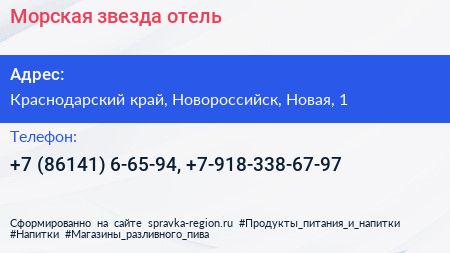 Морская звезда, отель по адресу Краснодарский край, Новороссийск, Новая, 1 в дальнейшем Организация, размещена в следующих категориях: