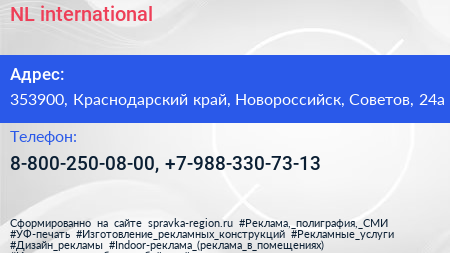 NL international по адресу 353900, Краснодарский край, Новороссийск, Советов, 24а в дальнейшем Организация, размещена в следующих категориях: