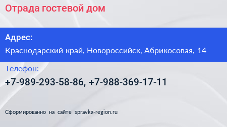 Отрада, гостевой дом по адресу Краснодарский край, Новороссийск, Абрикосовая, 14 в дальнейшем Организация, размещена в следующих категориях: