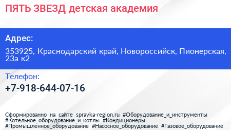 ПЯТЬ ЗВЕЗД, детская академия по адресу 353925, Краснодарский край, Новороссийск, Пионерская, 23а к2 в дальнейшем Организация, размещена в следующих категориях: